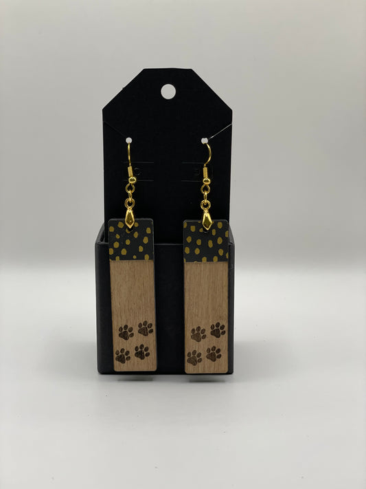 Earrings: "Rachel", A Handmade Wooden Earring with Black & Gold Dot Design