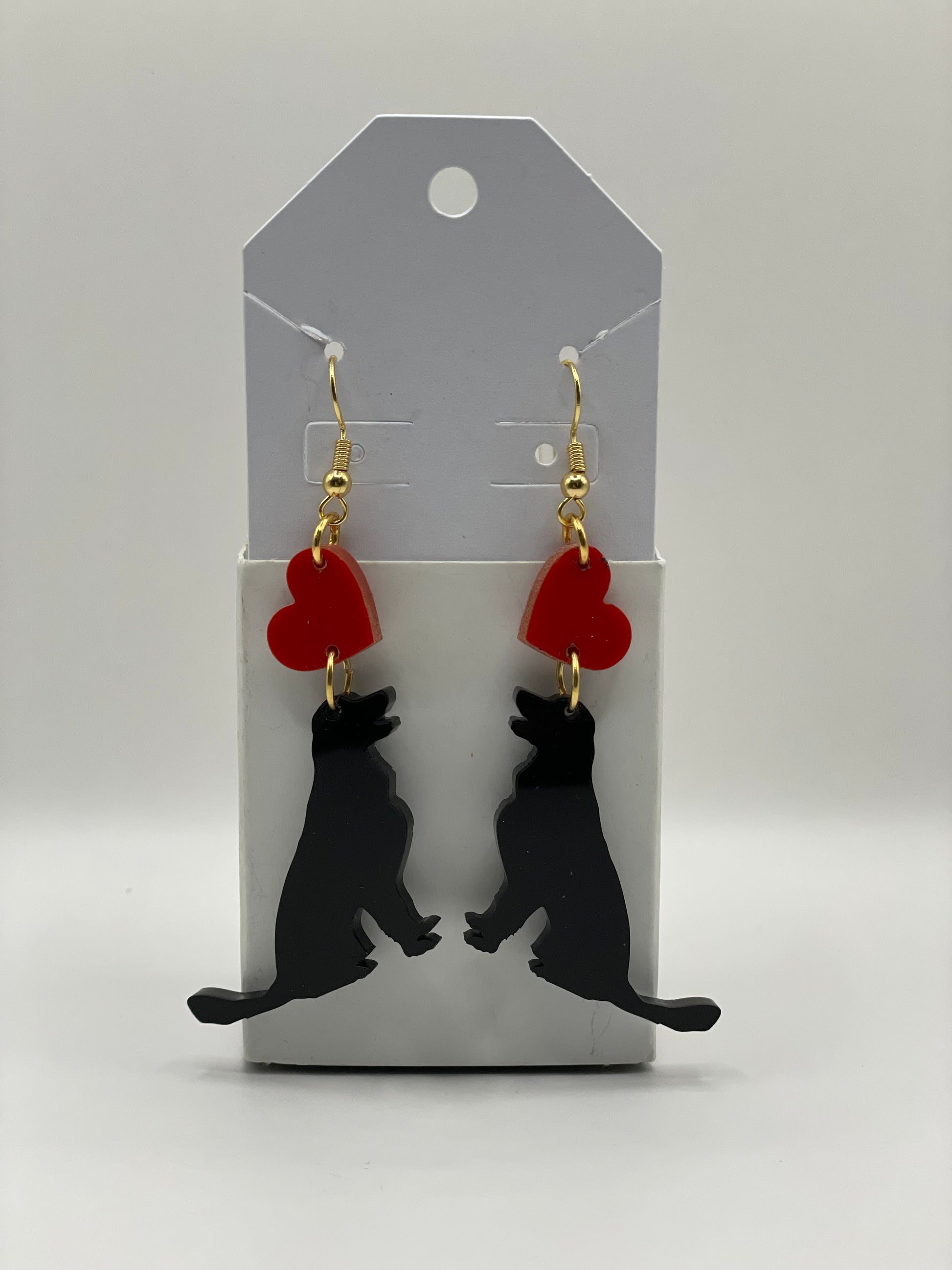 Earrings: "Emma", Acrylic Labrador Dog Silhouette with Red Heart