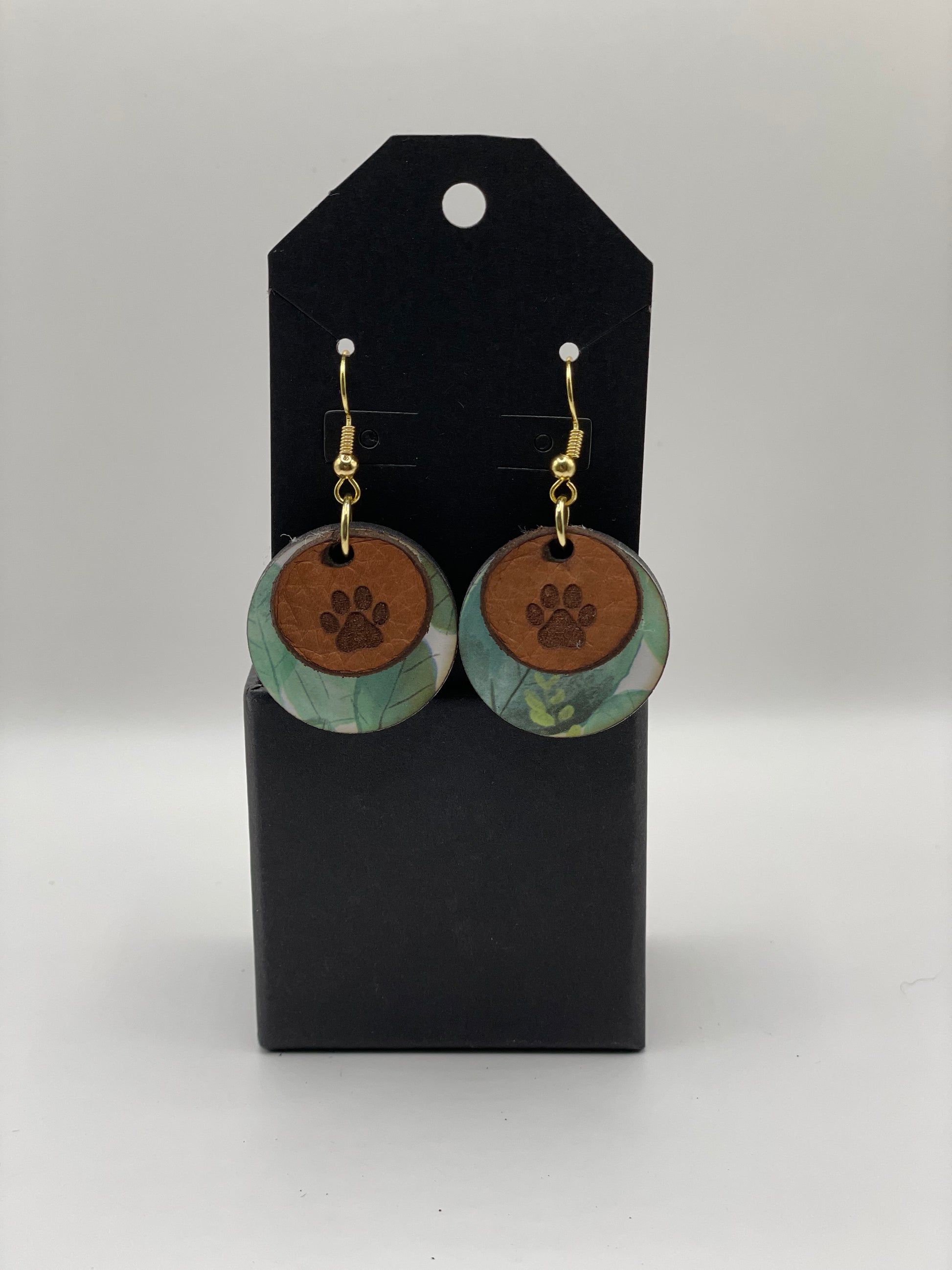 Fresh, playful, and full of charm—the Katie earrings are a must-have for every stylish dog mama. Handcrafted from lightweight wood, these earrings feature a soft green leafy backdrop topped with a warm leather overlay engraved with an adorable paw print. The gold hooks add a hint of shine, making them easy to dress up or down.